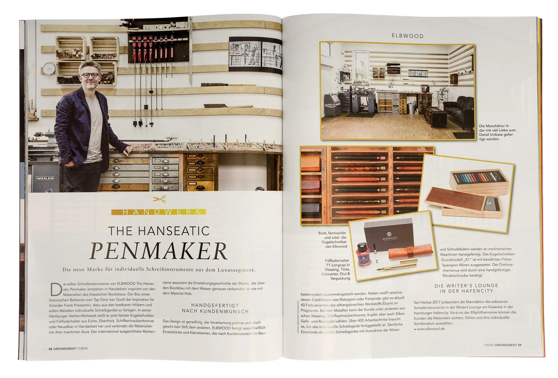 PRESSEZITAT: Das Männermagazin DREHMOMENT - LUXURY ALL THE WAY hat in seiner Jubiläumsausgabe 01-2018 einen ausführlichen Artikel über ELBWOOD veröffentlicht.