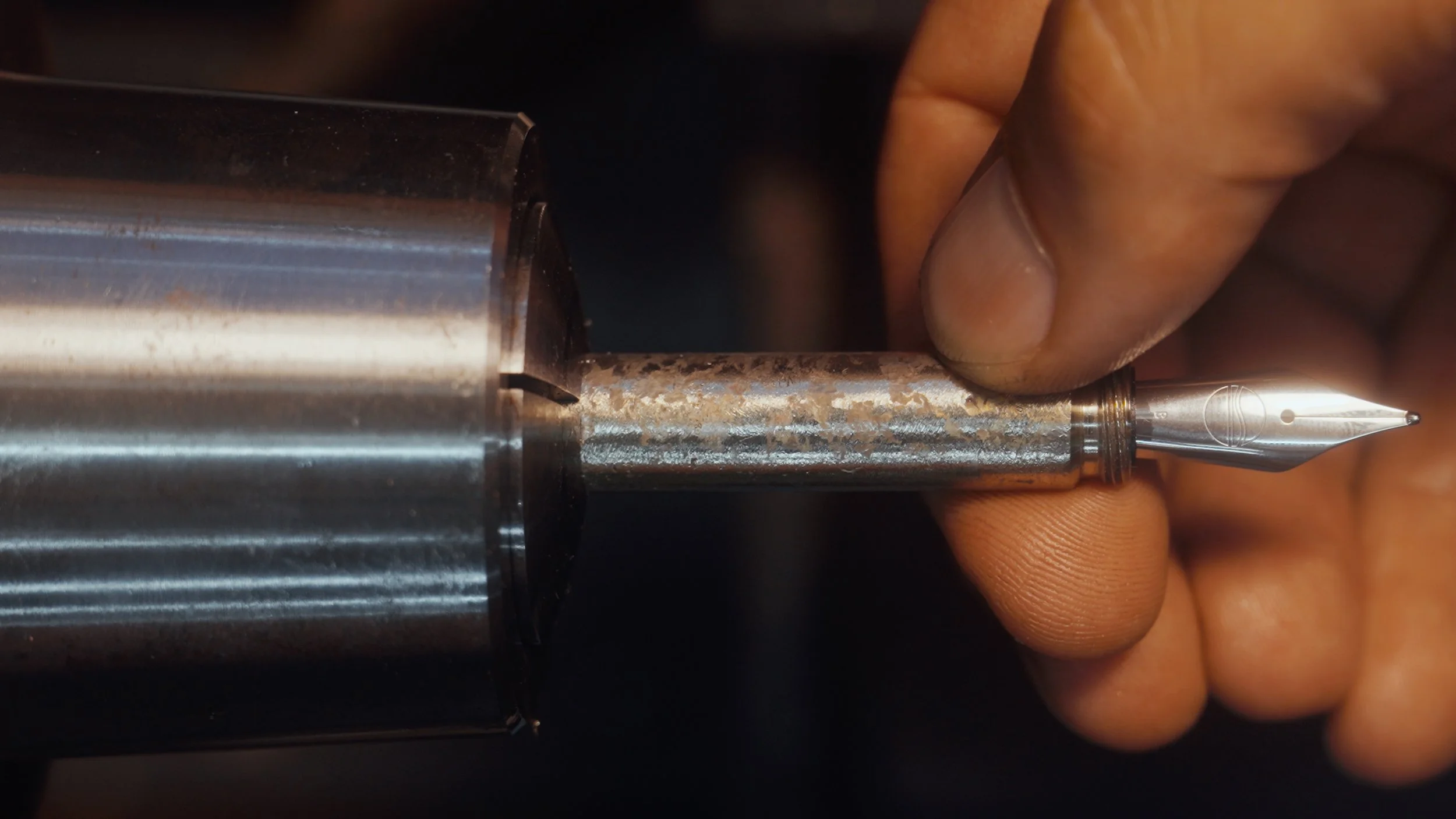 Relax and immerse yourself in the time-consuming process of crafting a fine bespoke fountain pen on a hand-operated mechanical lathe.