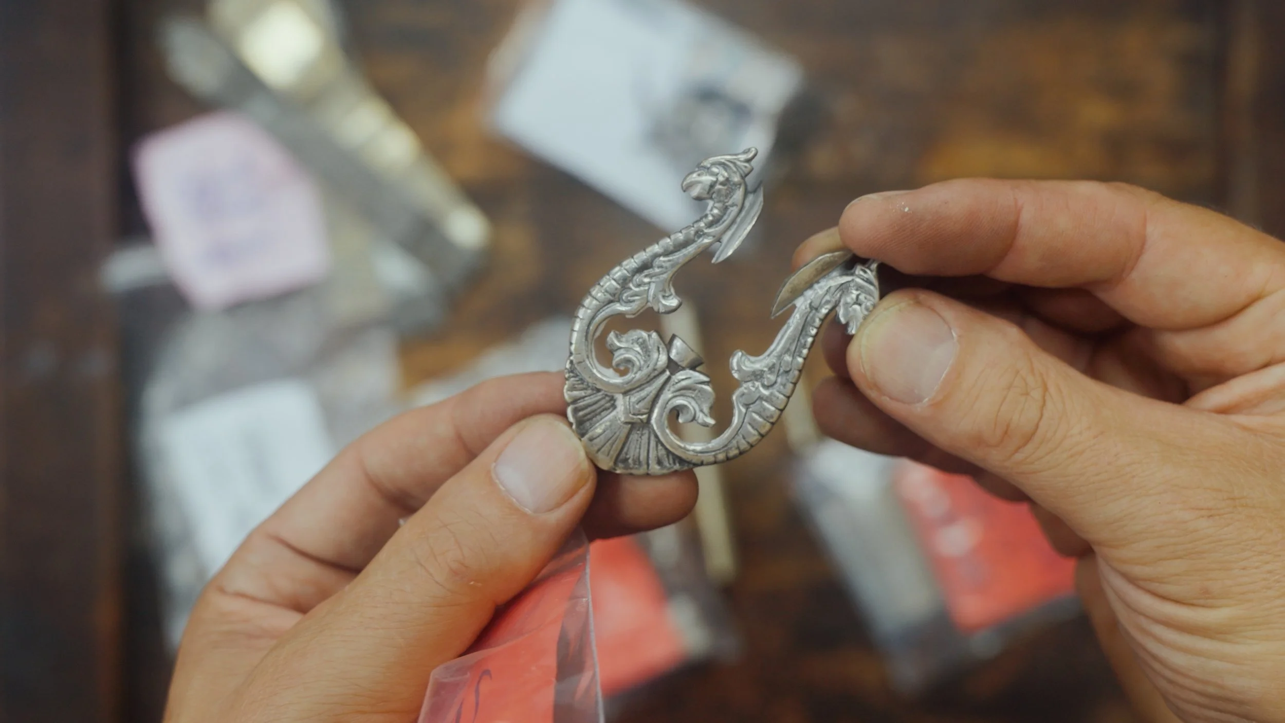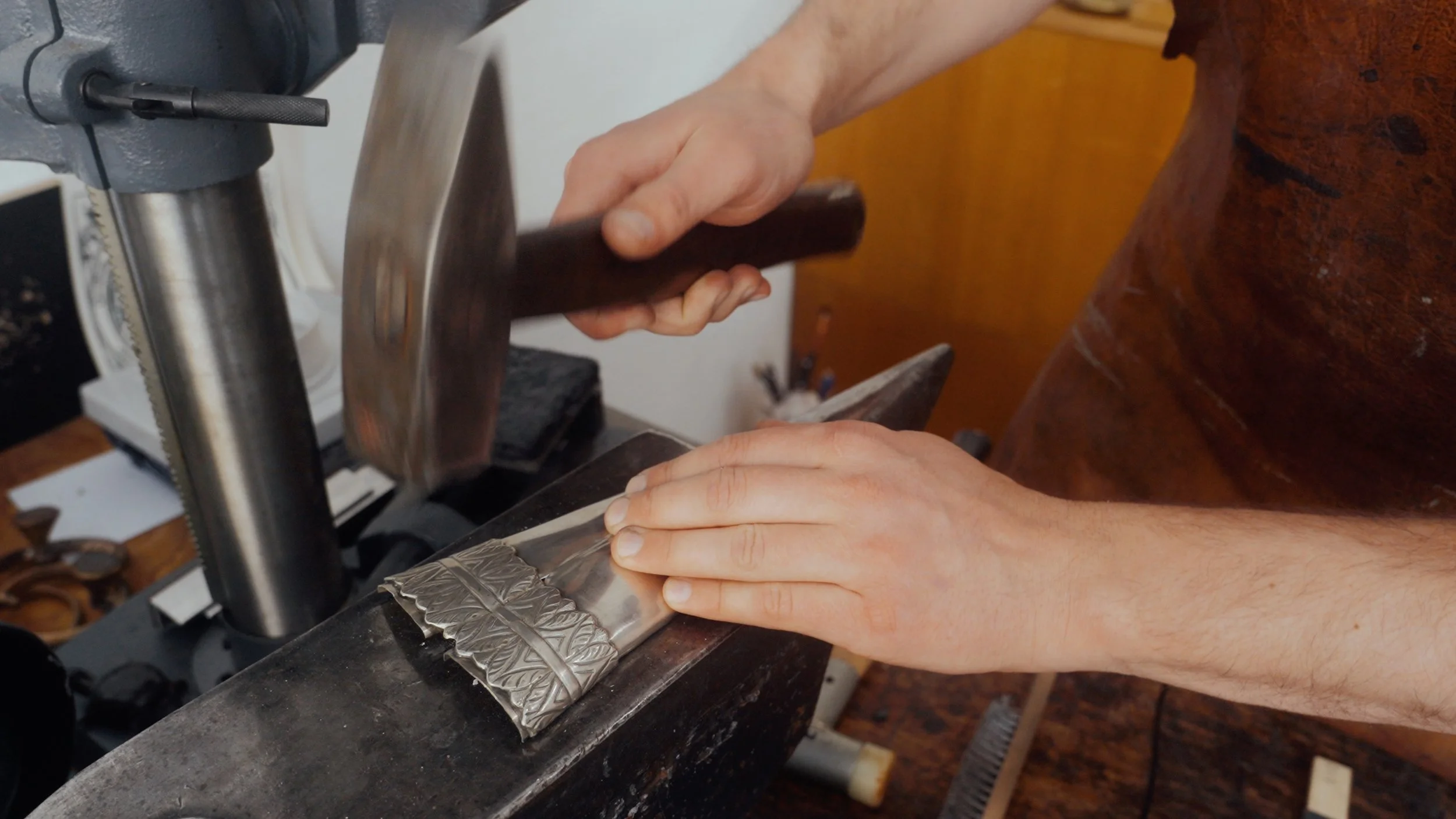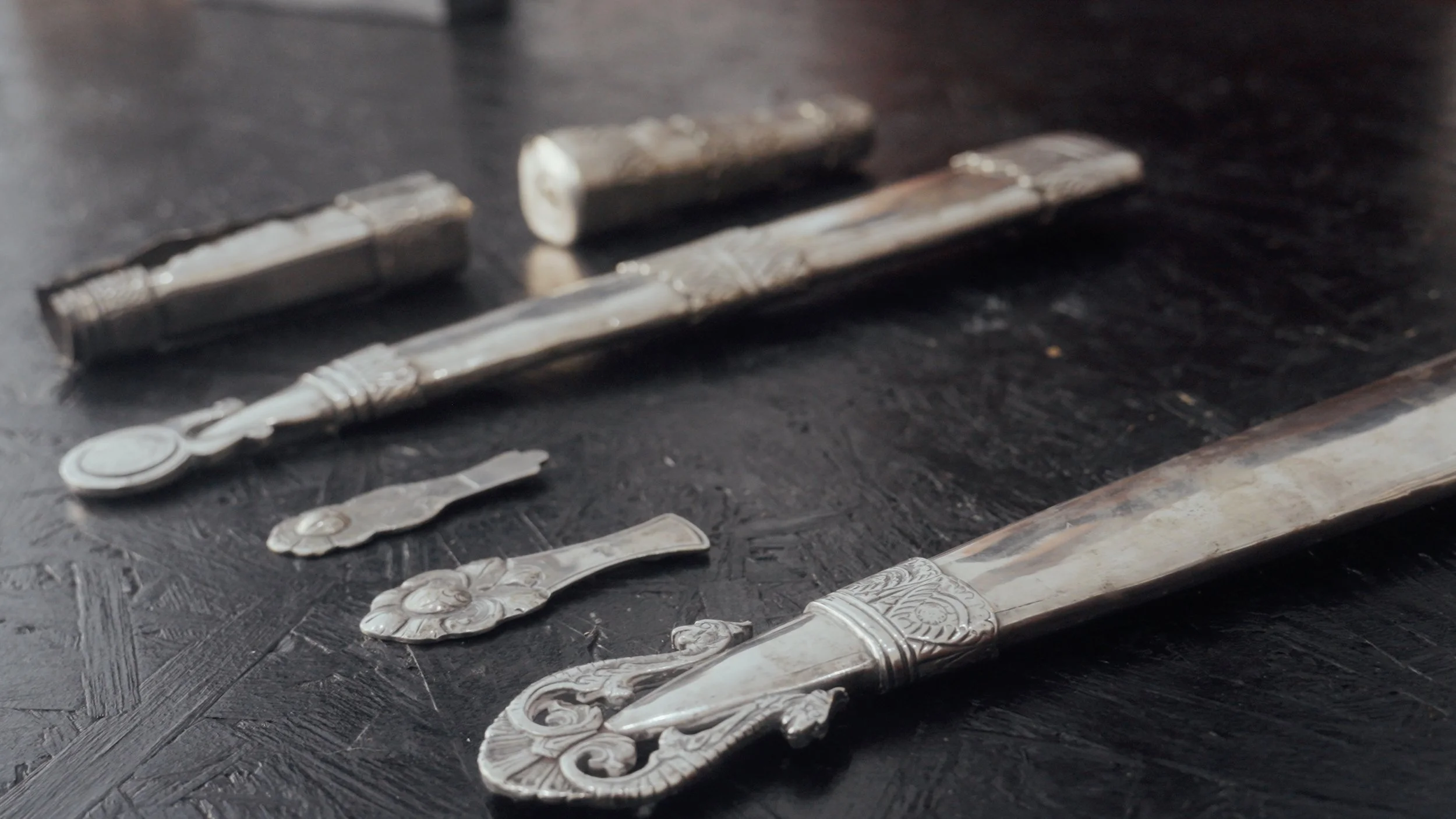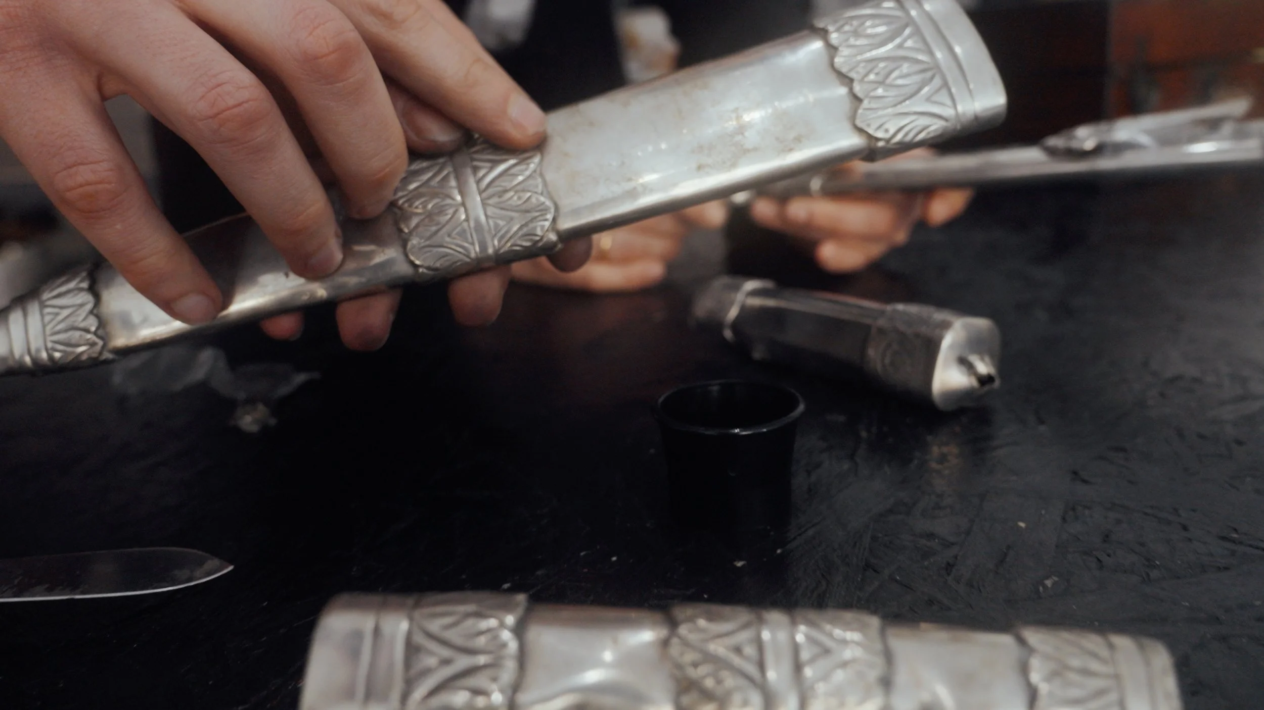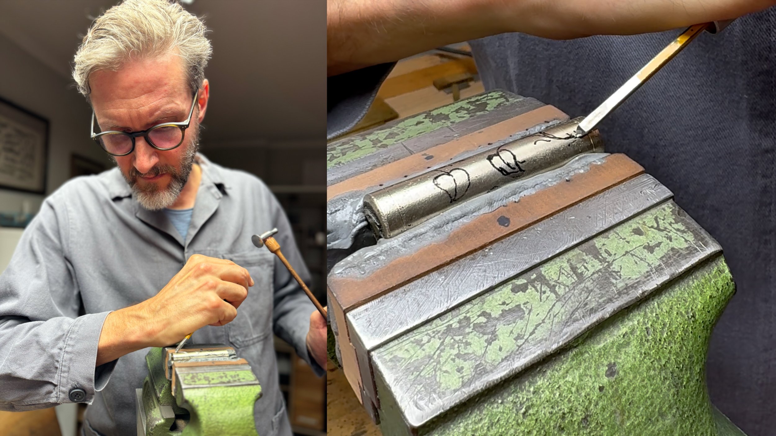 Über Monate hinweg durchsuchte Harrison Auktionen und sammelte sorgfältig ausgewählte Messer, jedes mit seiner eigenen Geschichte. Mit Hilfe des Bamberger Studios Nonne 11 schmolzen wir die Klingen ein und begannen die Transformation.