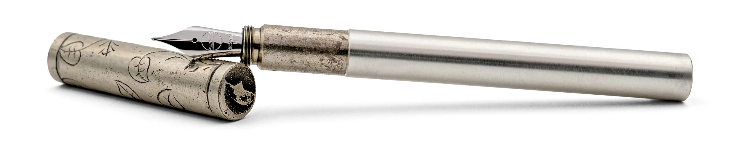 Dann begann ich, aus diesem besonderen Material den LONGCAP-Füllfederhalter zu fertigen. Das Griffstück bewahrt die archaische Oberfläche des Sandgusses, die Kappe wurde vom renommierten Handgraveur Florian Güllert mit den Gravuren der Gauchos versehen.