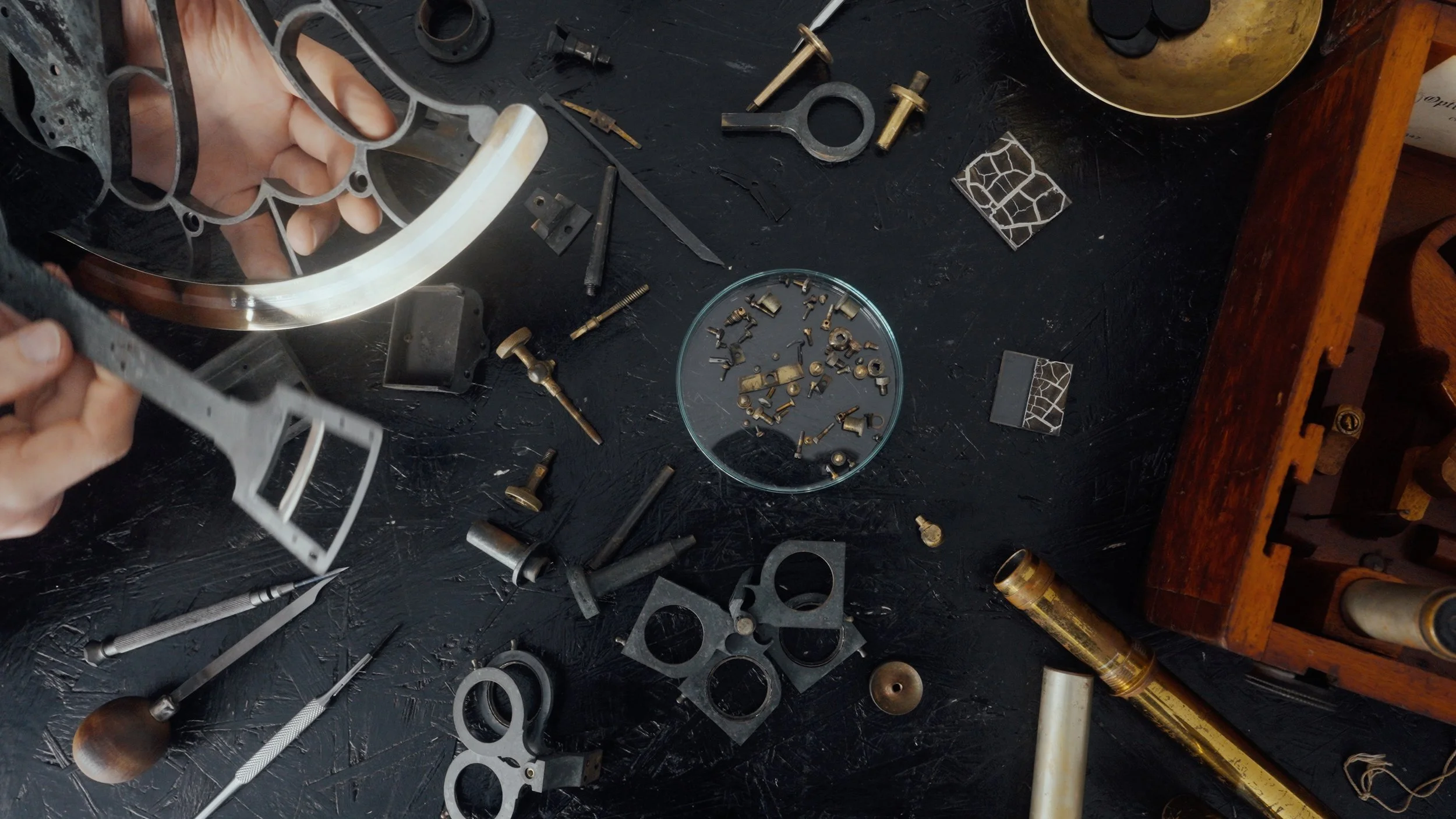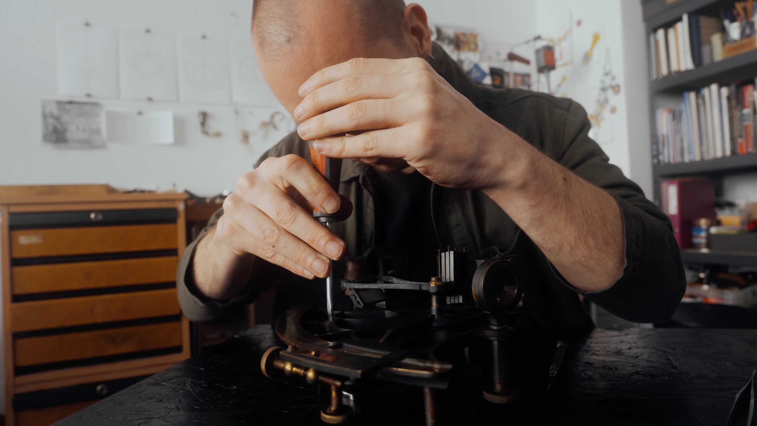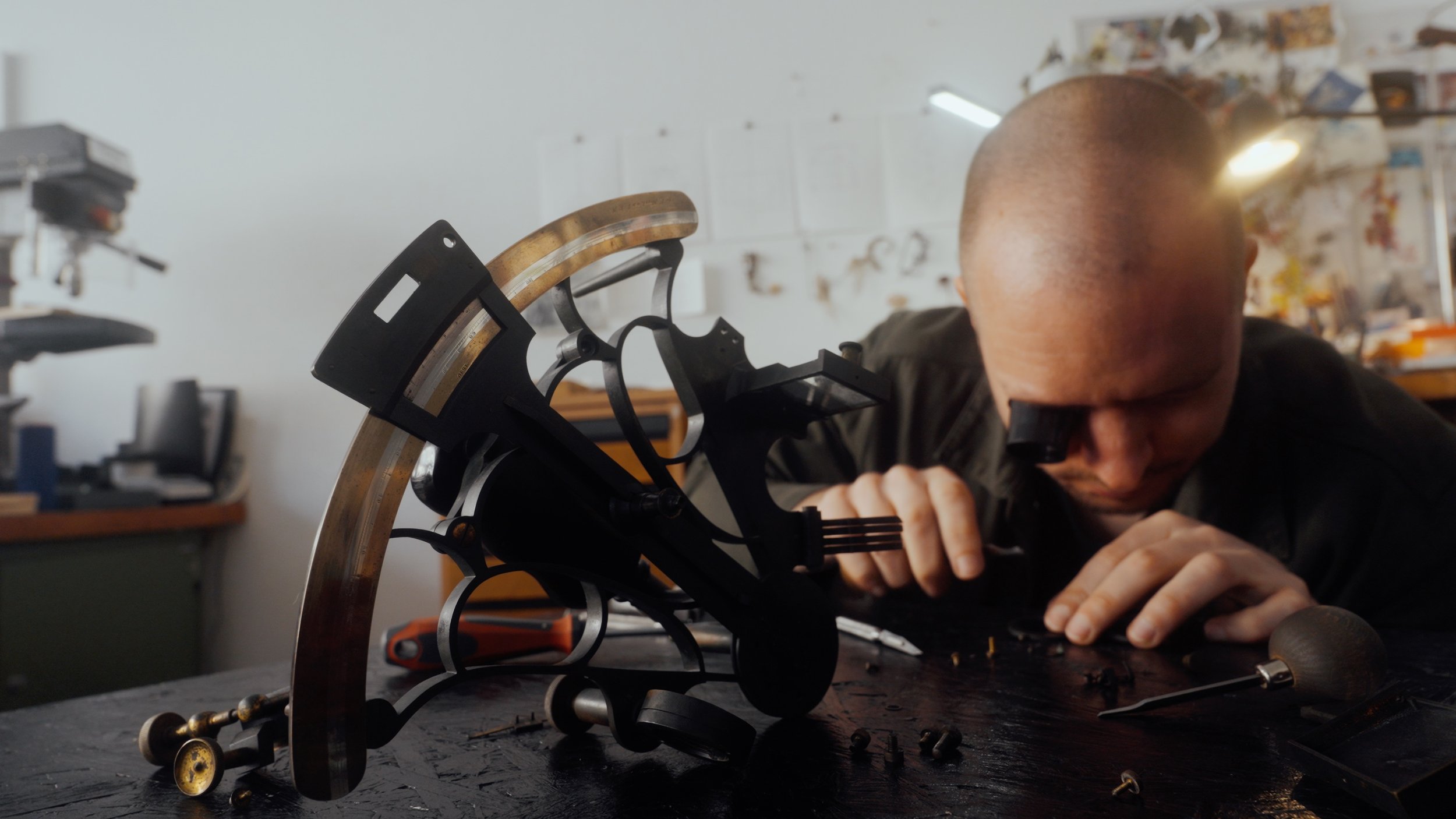 Auf der Suche nach einem passenden Ausgangsmaterial recherchierte Harrison monatelang nach originalen Sextanten aus jener Zeit. Schließlich wurde er in Cornwall, UK, fündig: Ein Antiquitätenhändler bot ihm drei Sextanten an, jeder mit dem eingravierten Namen des jeweiligen Commanders. Doch es sollte nicht irgendein Sextant sein – es musste der richtige sein. Sorgfältig studierte Harrison die Annalen der Royal Navy, verglich Biografien und Dienstzeugnisse, bis er den passenden Kandidaten fand – den Sextanten eines Commanders, dessen Leben und Werte mit denen seines verstorbenen Freundes in Einklang standen.
