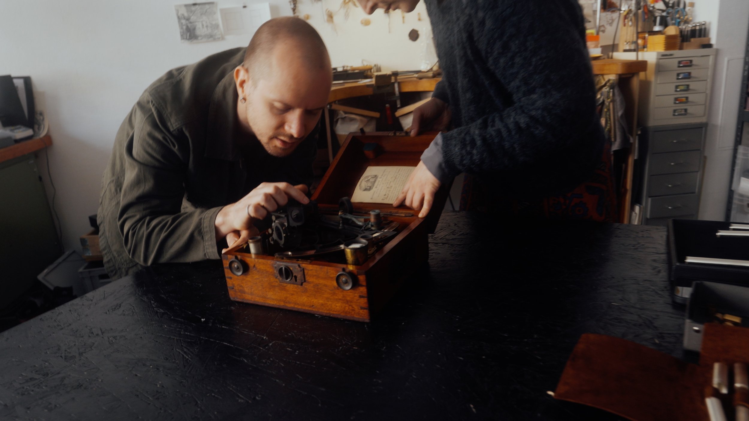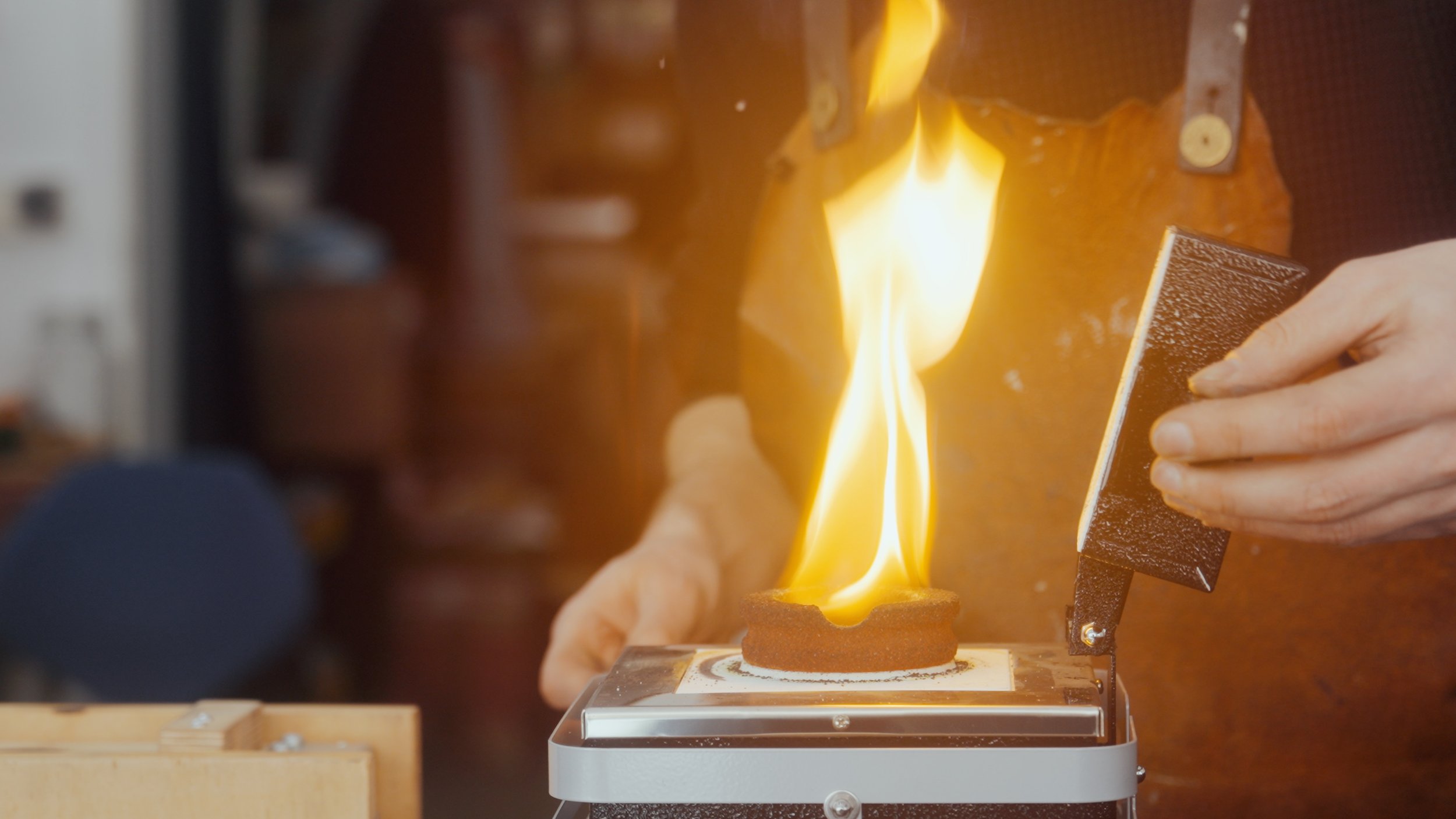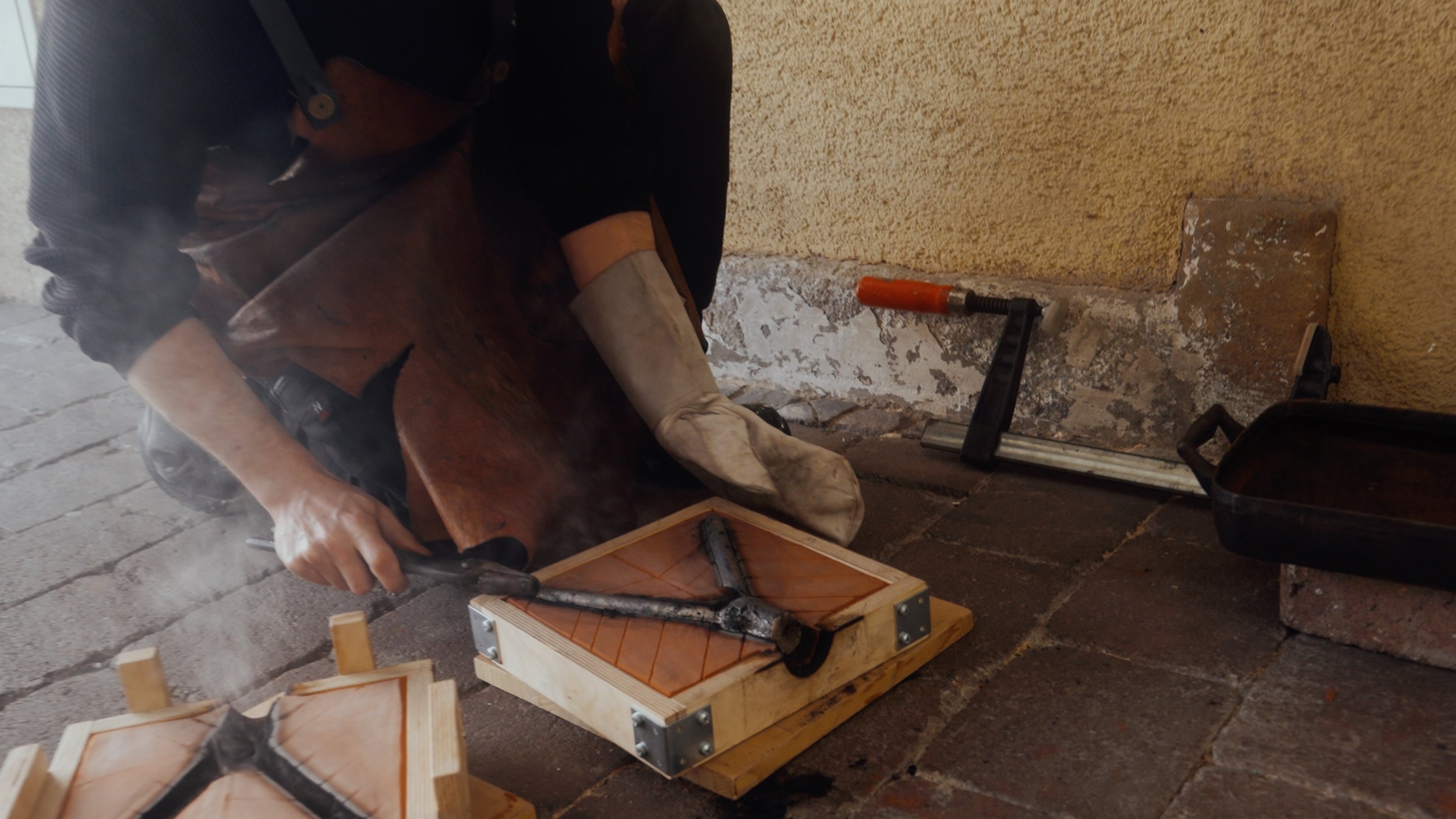 Mit dem ausgewählten Sextanten, diesem faszinierenden nautischen Instrument, machte ich mich auf den Weg ins Studio Nonne 11 nach Bamberg, um gemeinsam mit Nora und Alvaro das Instrument einzuschmelzen und so einen Rohling für den COMMANDER PEN zu schaffen.