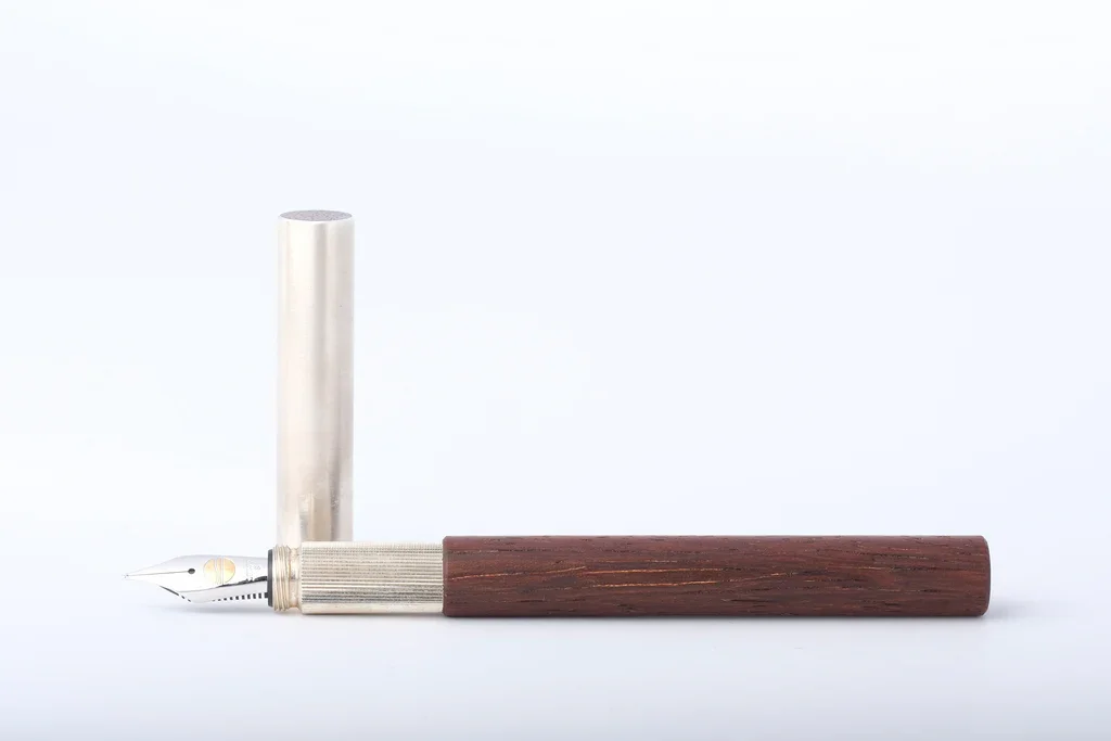 LONGCAP Füllfederhalter aus Mahagoni und massivem 935er Silber mit 18K/750er Gelbgoldfeder, teilweise mit Rhodium überzogen