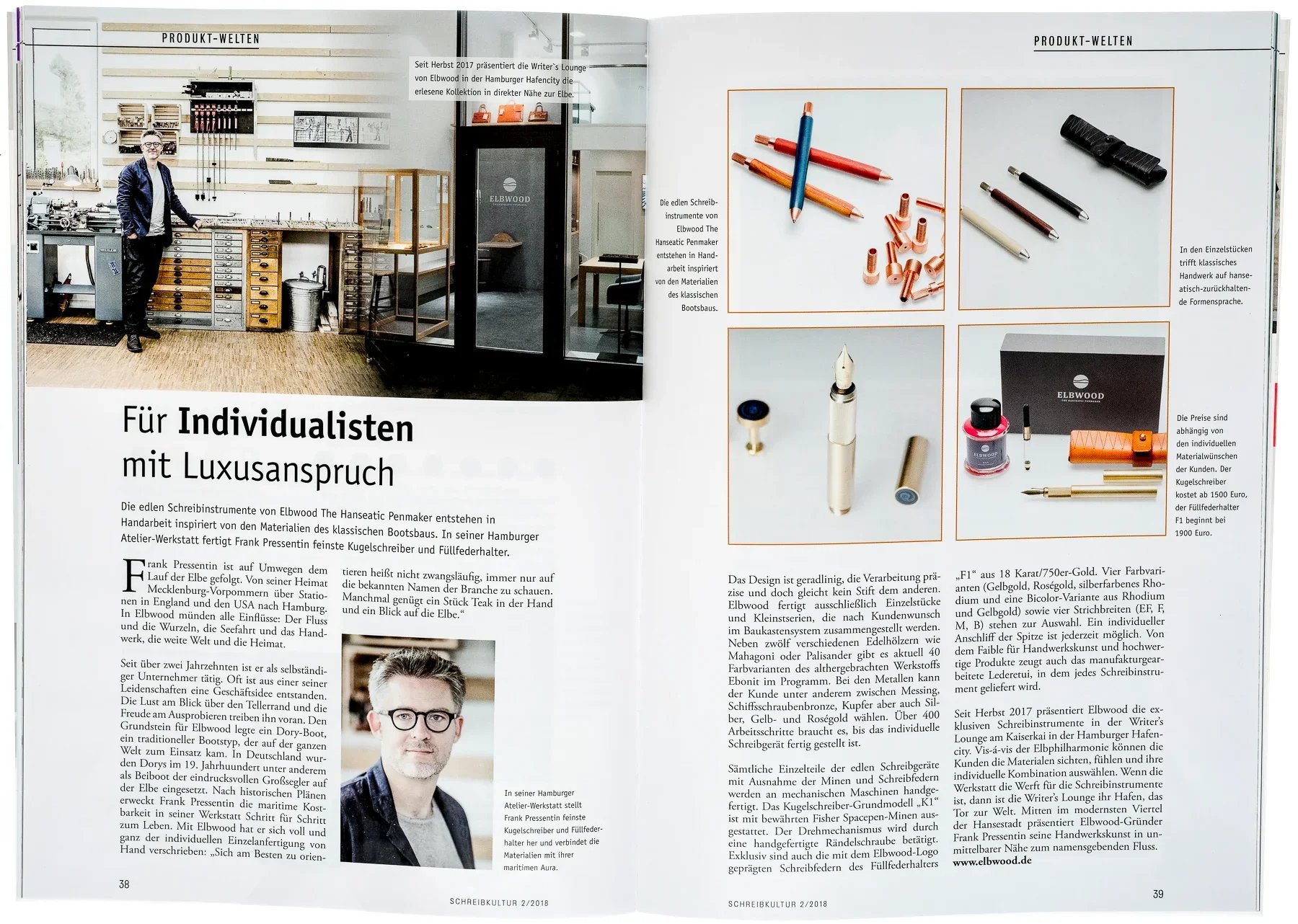 "Das Design ist geradlinig, die Verarbeitung präzise und doch gleicht kein Stift dem anderen. ELBWOOD fertigt ausschließlich Einzelstücke."
